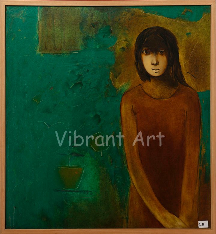 Original Framed Oil Painting of Blue Woman by Artist Anand Panchal